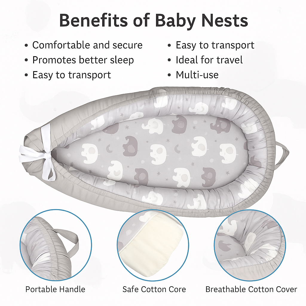 Give your newborn the gift of safe, cozy sleep with the Washable Folding. Designed with a breathable honeycomb structure and soft cotton fabric, this baby nest -crib keeps your baby comfortable while ensuring maximum airflow for restful nights and peaceful naps.